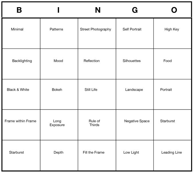 Your summer club challenge is Photo Bingo! Your Bingo card is shown in the featured photo for this event posting. Your challenge is to take any five photos that will fill a diagonal, horizontal or vertical line on the Bingo card…and to have fun!